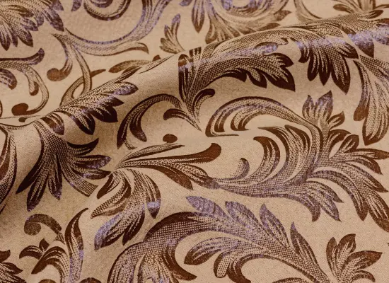 Внешний вид полотна украшает геральдический узор, цветочными побегами напоминающий о временах благородных рыцарей и древних фамильных родов с их богато украшенными гербами. Колористическая карта серии представлена в трёх оптимальных оттенках: молочном, бежевом и шоколадном.